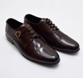 Make a bold impression with these refined brown leather Oxford shoes, uniquely styled with a modern monk strap design. Combining the timeless elegance of cap-toe formality with the contemporary charm of a golden buckle strap, this pair delivers sophistication with every step. Ideal for formal occasions, office wear, or upscale gatherings, these shoes promise class, comfort, and durability.